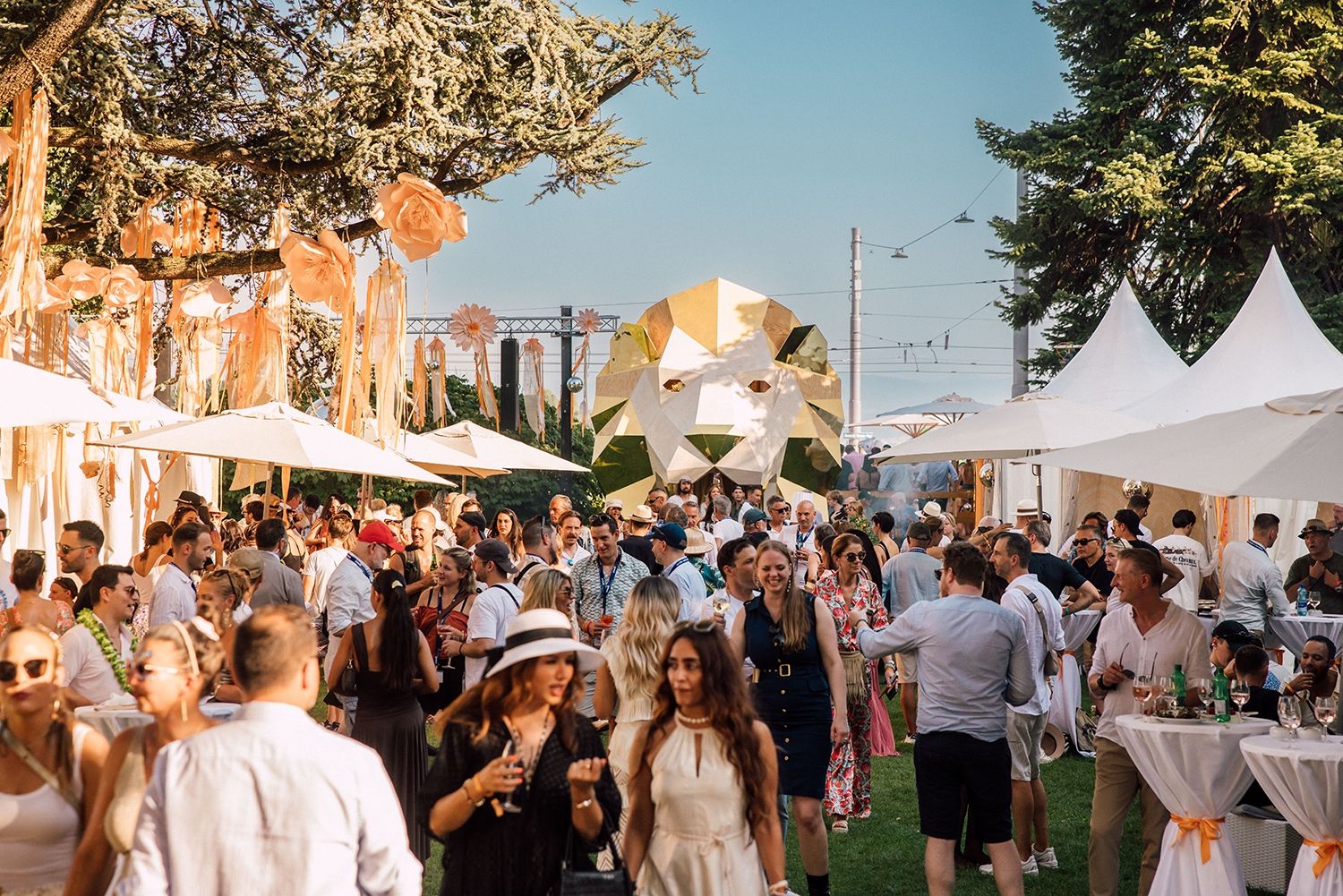 Seit Jahren verwandelt sich der Park des Baur au Lac am Tag der Street Parade in eine Eventfläche. In diesem Jahr erwartete die Gäste ein ganz besonderes Highlight: Der Eintritt zur Tanzfläche führte direkt durch das Maul eines goldenen Löwenkopfs. Ein spektakuläres Zusammenspiel von Design, Markenidentität und Erlebnisarchitektur.